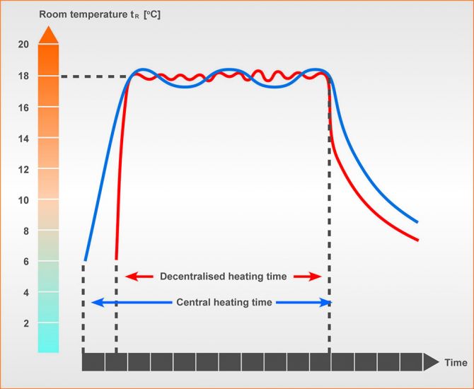 中央供暖系统的热量传输损失是由于从供热源头到供暖点、附属的换热站的运输路线太长而造成的。另一方面,海洋之神HY590分散的红外线加热器布置使得天然气能够直接转化成热能,作用在指定地点。这样一来,由于传输导致的热损耗就能够被避免。
