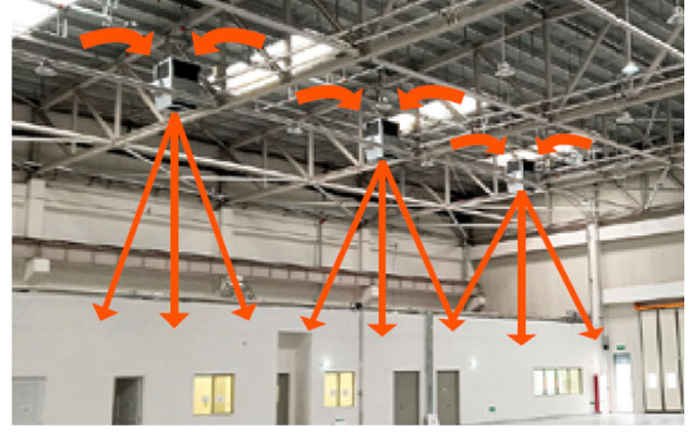 海洋之神HY590室内气候调节机组是一种创新解决方案,旨在为工业和商业建筑打造最佳室内气候。其强大的风扇与高效的EC电机相结合,确保温度均匀分布,有效地实现大面积加热或降温。大风量风扇可利用先进的空气分配技术,重新分配来自天花板下方聚集的热量,使之均匀地分布在加热的区域。